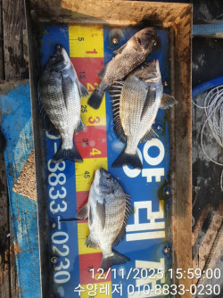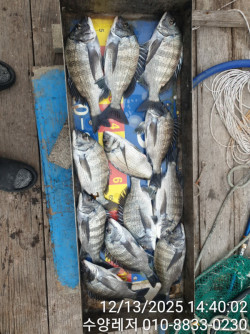 수양레저 예약문의 : 010-8833-0230실시간 예약 홈페이지 : http://suyang.sunsang24.com/수양레저 밴드는 출조 조사님들의 실제 조황이 업로드 됩니다..진실된 조황을 확인 할수 잇는 수양레저 밴드로 초대 합니다 https://band.us/n/a3aeb0d4te9eD 주 소 : 통영시 산양읍 풍화일주로 367 (산양읍 풍화리 753-1) 산양초등학교 풍화분교 50m 전(앞)수양레저는 핸들식 선외기 10대(60마력 1대, 50마력 3대, 30마력 5대, 20마력 1대).틸러식 25마력 3대를 운영하고 있으며 모든 배에 감성돔, 참돔 낚시를 위해 낚시대 거치대가 한쪽에 7개씩 양측 14개 설치되어 있습니다. 초보자를 위해 모든 장르의 낚시대와 릴을 대여해 드립니다.수양레저 협력 펜션 운영바다위통나무펜션 : 수양레저 이용시 펜션비 10% 할인펜션 실시간 예약 홈페이지 : ( http://www.seagrime.com )슈퍼우먼의 낚시 도시락주말은 3~4일전 평일은 출조 하루전 오후 5시까지 전화로 주문하시면 수양레저에서 도시락 수령과 반납이 가능합니다.도시락 주문 전화번호 : 010-9749-7997도시락 가격 : 1인분 9천원 / 최소 2인 이상 주문 가능선외기 대여료- 1, 2인 : 10만원, 주중(공휴일 제외) 1인 8만원(20% 할인)- 3인 : 13만원,- 4인 : 15만원, (50마력 17만원)루어(문어, 갑오징어, 무늬, 참돔 타이라바)는 상기 금액에서 2만원이 추가 됩니다..통영 풍화리 선외기 명가 수양레저의 12월 16일 49, 48, 47, 46등 100여수 감성돔 조황 입니다. ======= 수양레저 예약안내 =======■ 예약문의 : 010-8833-0230■ 오시는길 : 경남 통영시 산양읍 풍화일주로 367■ 홈페이지 예약 : http://suyang.sunsang24.com■ 계좌안내 : 농협 / 352-0867-7470-63 / 오영수#수양레저 #선상낚시 #바다낚시 #배낚시 #낚시배 #낚싯배 #선상24