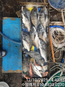 수양레저 예약문의 : 010-8833-0230실시간 예약 홈페이지 : http://suyang.sunsang24.com/수양레저 밴드는 출조 조사님들의 실제 조황이 업로드 됩니다..진실된 조황을 확인 할수 잇는 수양레저 밴드로 초대 합니다 https://band.us/n/a3aeb0d4te9eD 주 소 : 통영시 산양읍 풍화일주로 367 (산양읍 풍화리 753-1) 산양초등학교 풍화분교 50m 전(앞)수양레저는 핸들식 선외기 10대(60마력 1대, 50마력 3대, 30마력 5대, 20마력 1대).틸러식 25마력 3대를 운영하고 있으며 모든 배에 감성돔, 참돔 낚시를 위해 낚시대 거치대가 한쪽에 7개씩 양측 14개 설치되어 있습니다. 초보자를 위해 모든 장르의 낚시대와 릴을 대여해 드립니다.수양레저 협력 펜션 운영바다위통나무펜션 : 수양레저 이용시 펜션비 10% 할인펜션 실시간 예약 홈페이지 : ( http://www.seagrime.com )슈퍼우먼의 낚시 도시락주말은 3~4일전 평일은 출조 하루전 오후 5시까지 전화로 주문하시면 수양레저에서 도시락 수령과 반납이 가능합니다.도시락 주문 전화번호 : 010-9749-7997도시락 가격 : 1인분 9천원 / 최소 2인 이상 주문 가능선외기 대여료- 1, 2인 : 10만원, 주중(공휴일 제외) 1인 8만원(20% 할인)- 3인 : 13만원,- 4인 : 15만원, (50마력 17만원)루어(문어, 갑오징어, 무늬, 참돔 타이라바)는 상기 금액에서 2만원이 추가 됩니다..통영 풍화리 선외기 명가 수양레저의 12월 18일 감성돔 47외 마릿수 카고, 흘림 조황 입니다. ======= 수양레저 예약안내 =======■ 예약문의 : 010-8833-0230■ 오시는길 : 경남 통영시 산양읍 풍화일주로 367■ 홈페이지 예약 : http://suyang.sunsang24.com■ 계좌안내 : 농협 / 352-0867-7470-63 / 오영수#수양레저 #선상낚시 #바다낚시 #배낚시 #낚시배 #낚싯배 #선상24