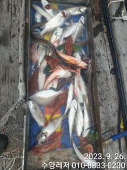 수양레저는 핸들식 선외기 10대(60마력 1대, 50마력 3대, 30마력 5대, 20마력 1대).틸러식 25마력 3대를 운영하고 있으며 모든 선외기에 전동윈치를 설치해 집어망을 올리때 윈치를 사용해 편안한 낚시가 가능하며. 대여용 선외기에 설치된 전동윈치는 수양레저가 최초이며 현재까지 유일 합니다. 모든 배에 감성돔, 참돔 낚시를 위해 낚시대 거치대가 한쪽에 7개씩 양측 14개 설치되어 있습니다. 초보자를 위해 모든 장르의 낚시대와 릴을 대여해 드립니다.슈퍼우먼의 낚시 도시락주말은 3~4일전 평일은 출조 하루전 오후 5시까지 전화로 주문하시면 수양레저에서 도시락 수령과 반납이 가능합니다.도시락 주문 전화번호 : 010-9749-7997도시락 가격 : 1인분 8천원 / 최소 2인 이상 주문 가능선외기 대여료1인 : 7만원, 2인 : 9만원, 3인 : 11만원, 4인 : 13만원루어(문어, 갑오징어, 무늬, 참돔 타이라바)는 상기 금액에서 2만원이 추가 됩니다..수양레저 예약문의 : 010-8833-0230예약 홈페이지 : http://suyang.sunsang24.com/수양레저 밴드 : https://band.us/band/73064227+65주 소 : 통영시 산양읍 풍화일주로 367 (산양읍 풍화리 753-1) 산양초등학교 풍화분교 50m 전(앞)통영 풍화리 선외기 명가 수양레저의 감성돔, 문어, 갑오징어 조황 입니다.감성돔 33외 마릿수, 갑오징어는 신발짝 사이즈, 문어 조황 입니다... ======= 수양레저 예약안내 =======■ 예약문의 : 010-8833-0230■ 오시는길 : 경남 통영시 산양읍 풍화일주로 367■ 홈페이지 예약 : http://suyang.sunsang24.com■ 계좌안내 : 농협 / 352-0867-7470-63 / 오영수#수양레저 #선상낚시 #바다낚시 #배낚시 #낚시배 #낚싯배 #선상24